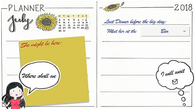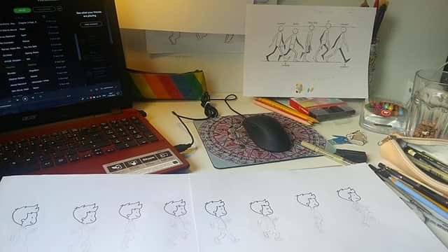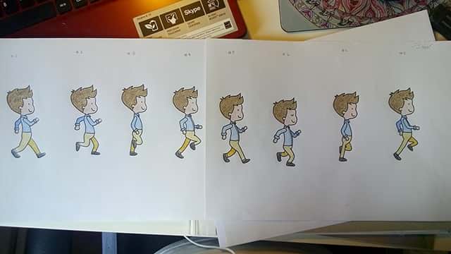 The idea of the game came to be, when I caught a glimpse of Ana's cute artwork. Her style set the mood for a colorful, adorable and heartwarming game, which came in handy as we were already thinking about personalized weeding gifts. We only had a few lengthy Skype calls to plan the game. First, we established the mood and emotions that we wanted to instill in our two special players. Second, we planned out the journey of our two players to the wedding. As this game will be finalized after the wedding, the theme of an album looking back on the last days before the wedding explains the handcraft paper look and the "flipping through the pages" -jumping to the bits that are more memorable. So Ana started drawing and cutting a cute vivid world and I took her scans and animated them and brought them to live in our little game.